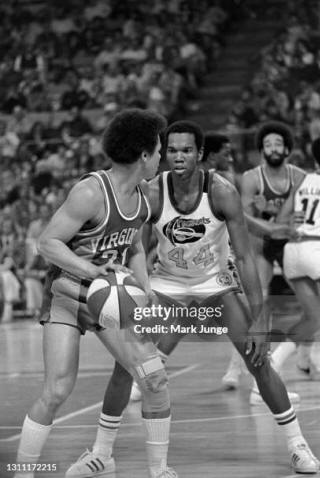 ![]() Roland Taylor (1), Mack Calvin (21), Mel Bennett (34), Julius Erving (32) Jim Eakins (33), Rich Jones (33), Mike Jackson (31), Kim Hughes (35) Virginia Squires at New York Nets From www.gettyimages.com |