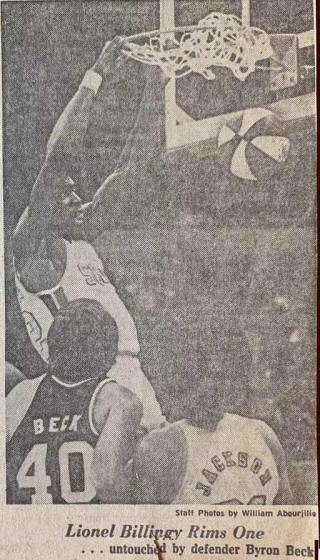 ![]() Monte Towe (13), Jim Eakins (33), Mike Jackson (31) Denver Nuggets at Virginia Squires |