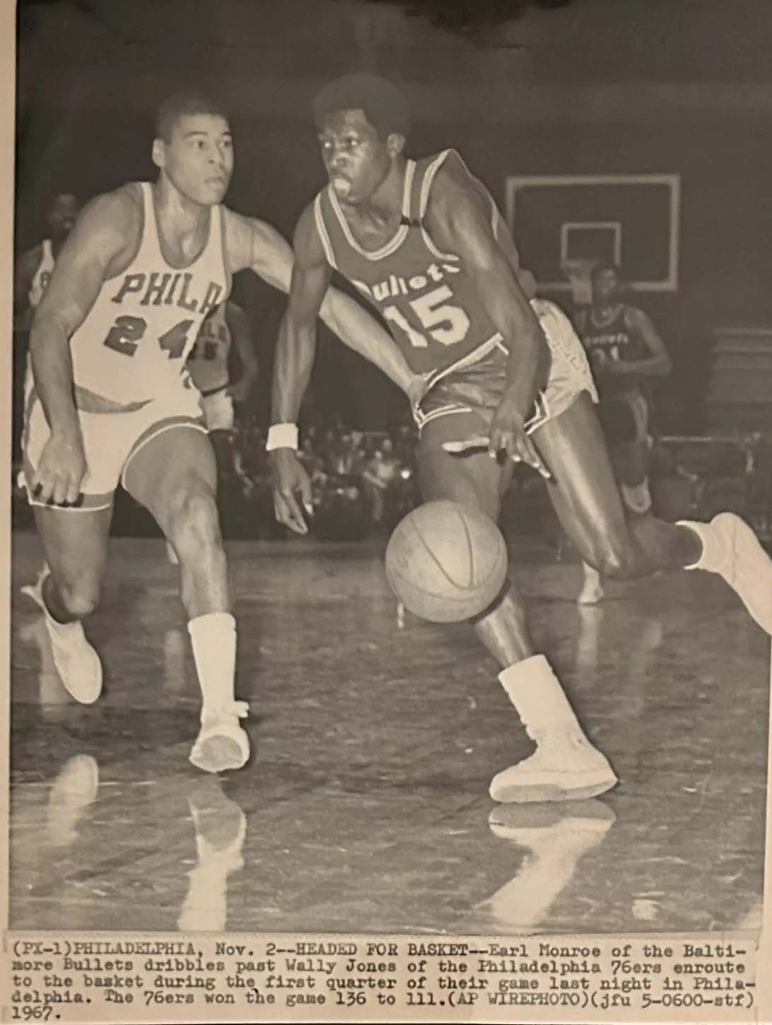 ![]() Wali Jones (R), Rick Barry (R) Philadelphia 76ers at San Francisco Warriors |