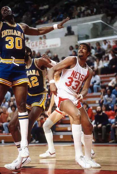 ![]() George McGinnis (30), Mike Bantom (42), Maurice Lucas (33) Indiana Pacers at New Jersey Nets |