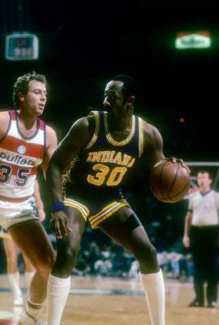 ![]() Skeeter Swift (23), George McGinnis (30) Pittsburgh Condors at Indiana Pacers Photo by Frank H. Fisse From hoopshall.com |