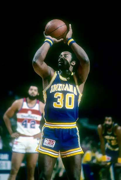 ![]() Roger Brown (35), John Beasley (44), George McGinnis (30) Utah Stars at Indiana Pacers From www.gettyimages.com |