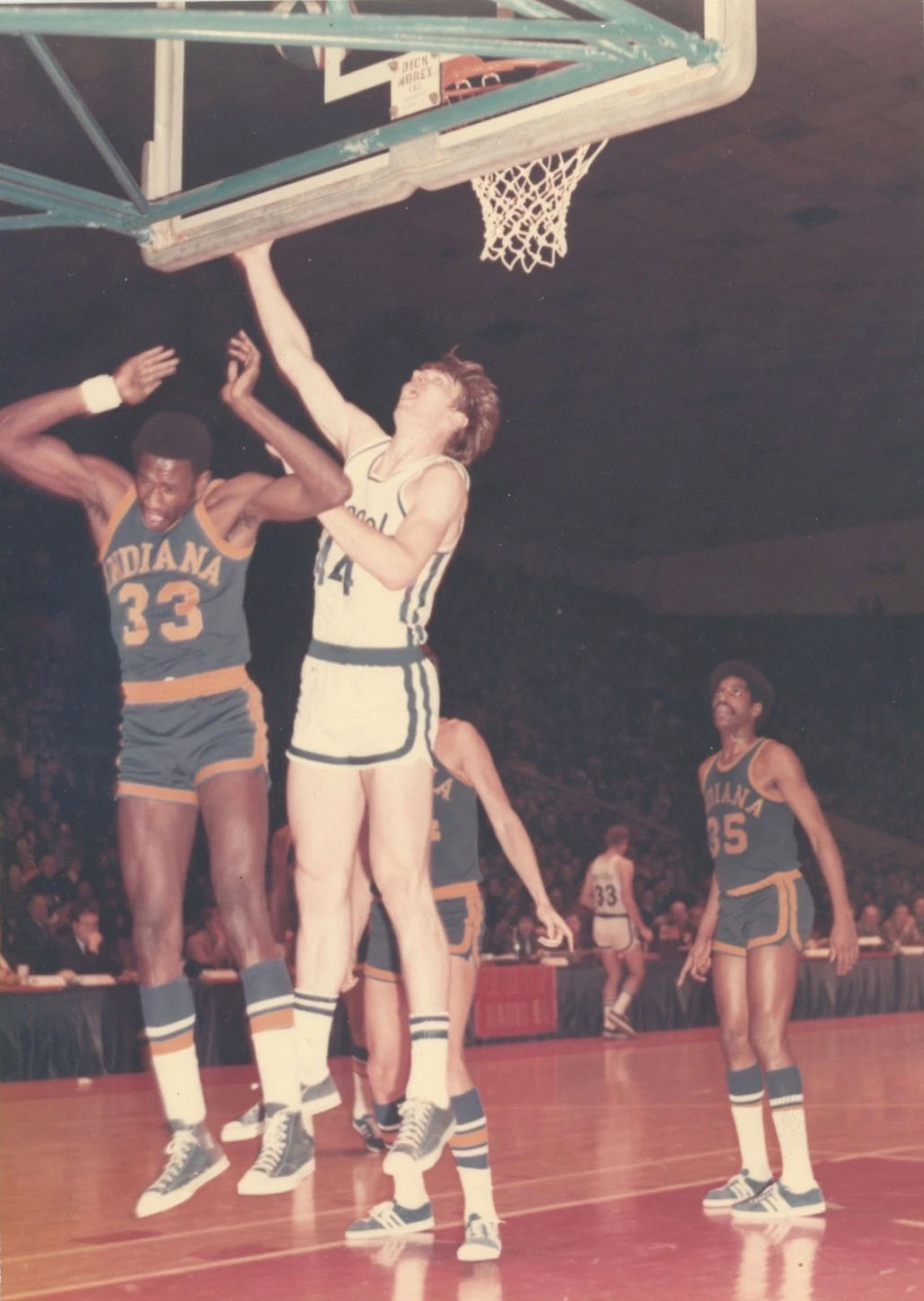 ![]() Don Sidle (33), Dan Issel (44), Roger Brown (35) Indiana Pacers at Kentucky Colonels |