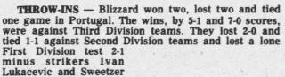 | Toronto Blizzard at Torralta (Portugal) Date: March 1, 1980 Blizzard won 5-1 Attendance:? |
