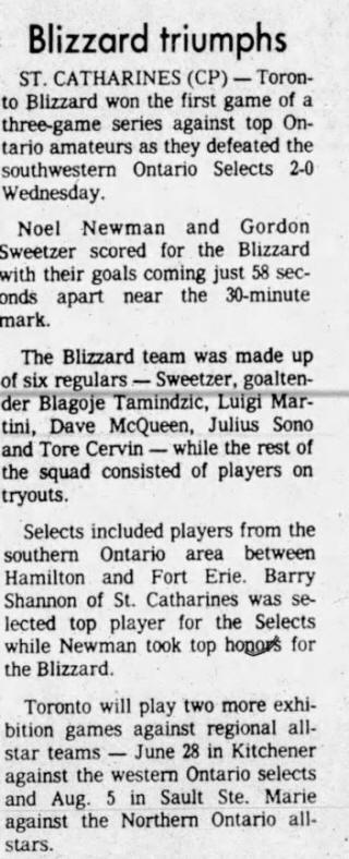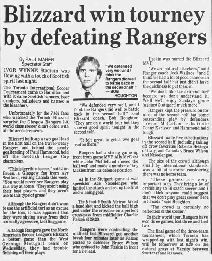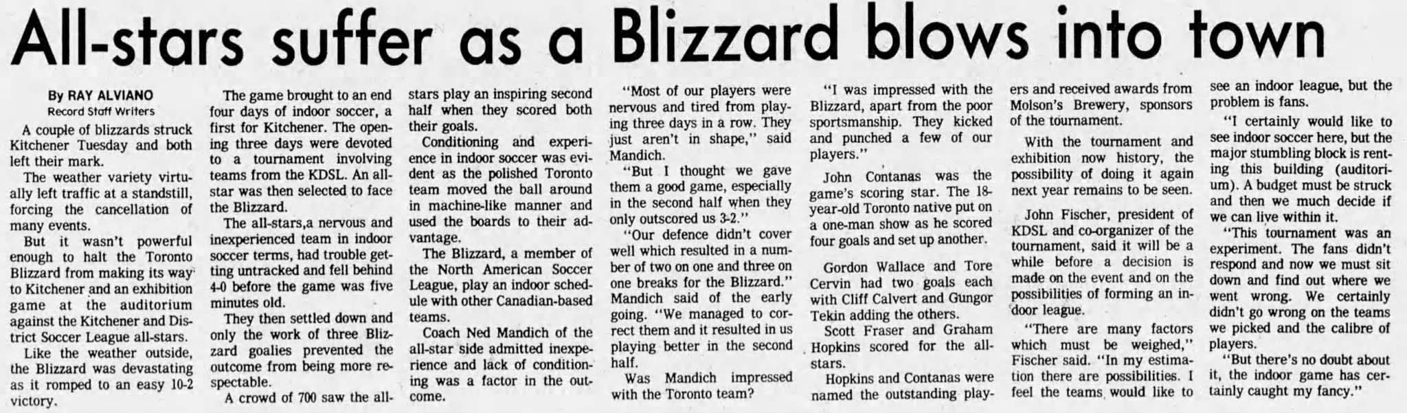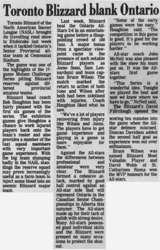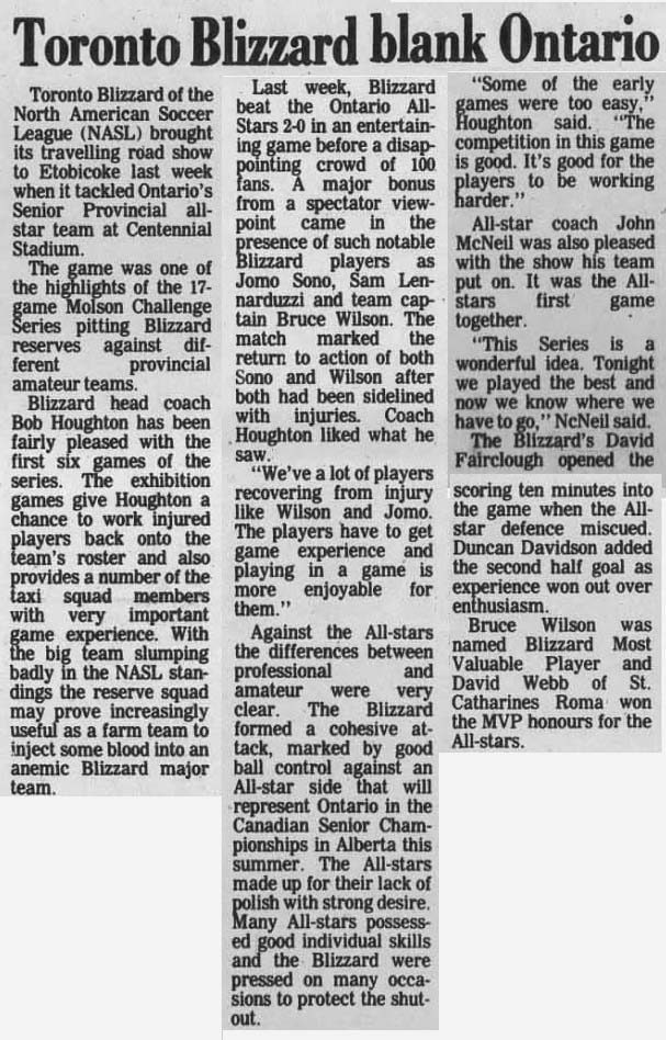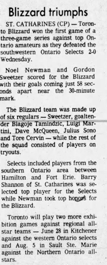 Catharines, Ontario) Date: June 10, 1981 Blizzard Won 2-0 Attendance Goals: Blizzard-Noel Newman, Gordon Sweetzer |