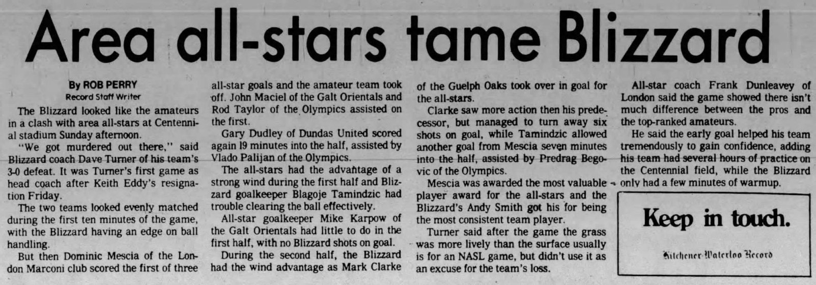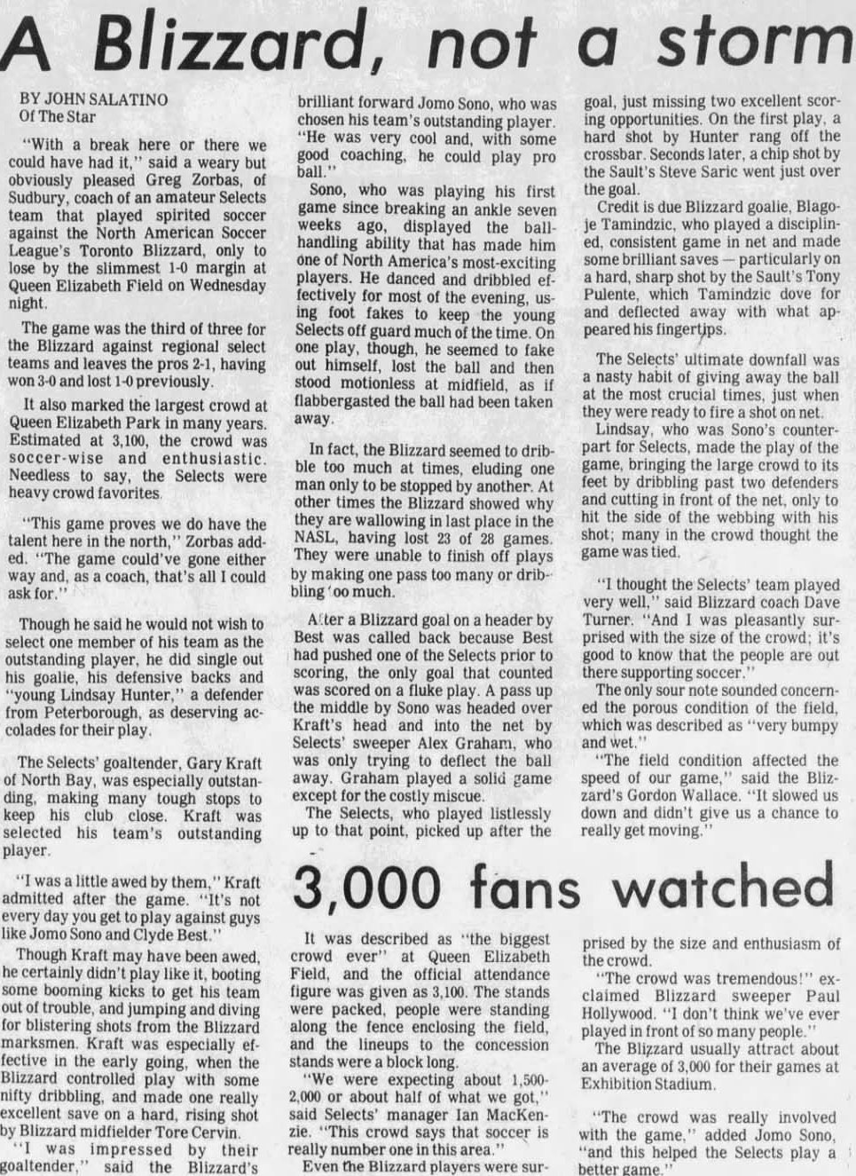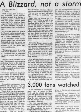 (Kitchener, Ontario) Date: June 28, 1981 Blizzard Lost 3-0 Attendance Goals: Selects-Dominic Mescia (2), Gary Dudley |