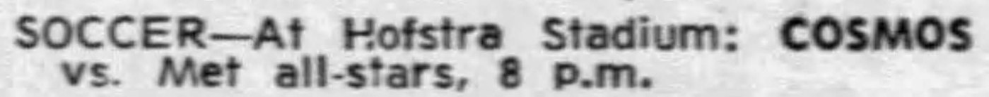| New York Cosmos at Toronto Metros-Croatia Date: September ?, 1975 Cosmos won/lost Attendance: Canceled |