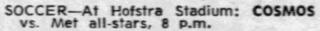| New York Cosmos at Poughkeepsie Blue and Whites Date: April 17, 1975 Cosmos won/lost? Attendance: Goals: Cosmos- |