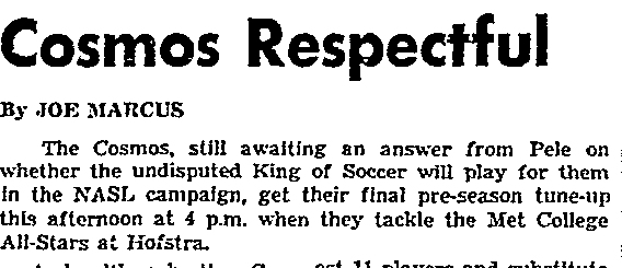 | College All-Stars at New York Cosmos Date: May 1, 1974 Cosmos won 2-0 Attendance: Goals: Cosmos- |
