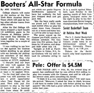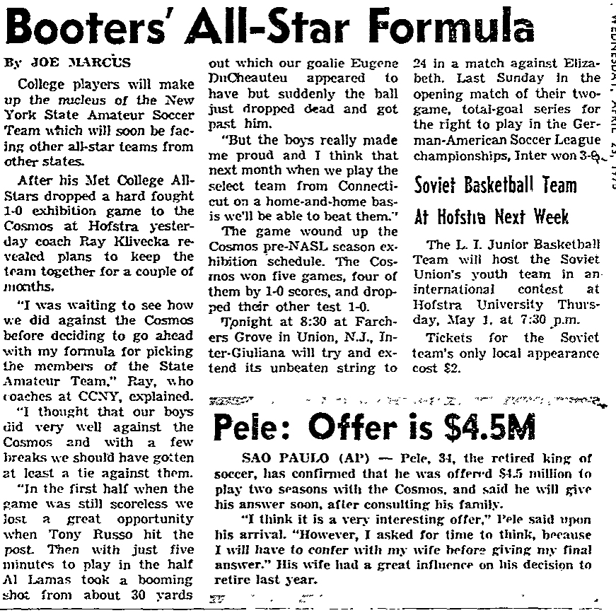 | College All-Stars at New York Cosmos Date: April 22, 1975 Cosmos won 1-0 Attendance: Goals: Cosmos- |