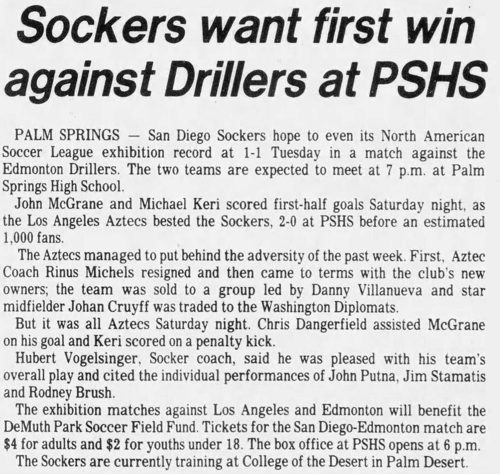 Barbara, California) Date: March 6, 1980 Aztecs won 2-1 Attendance: Goals: Aztecs-Chris Dangerfield, Wim Suurbier Drillers-Dwight Lodeweges |
