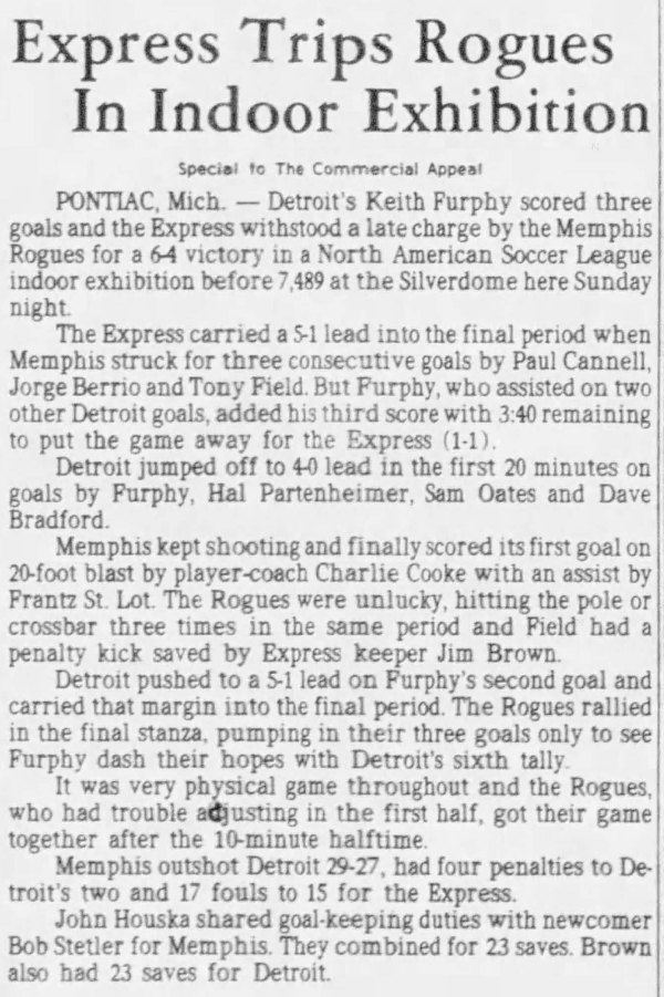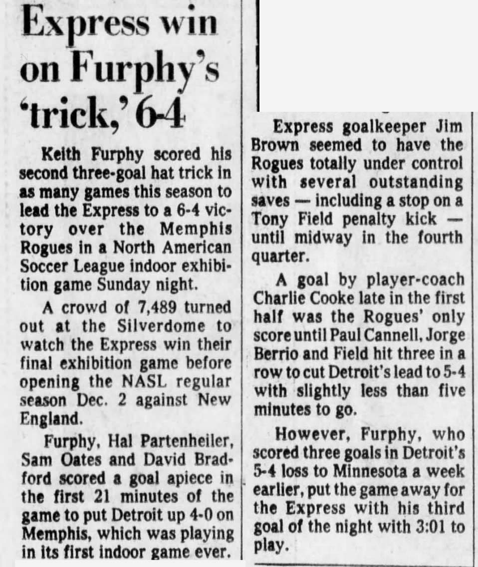 | Detroit Express at Luton Town (England) Date: February 22, 1978 Express won 4-0 Attendance: |