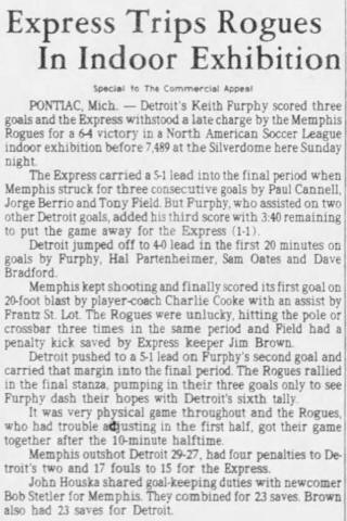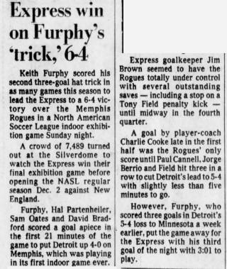 Michigan) Date: May 4, 1978 Express won 8-0 Attendance: 5,000 Goals: Express-Dave Shelton (4) |