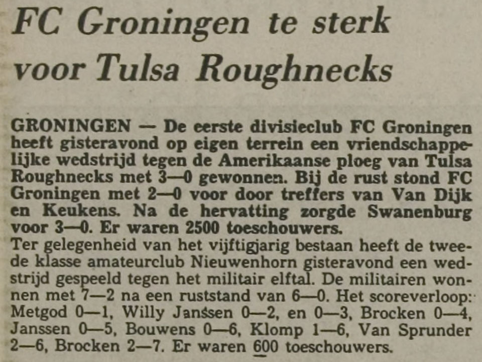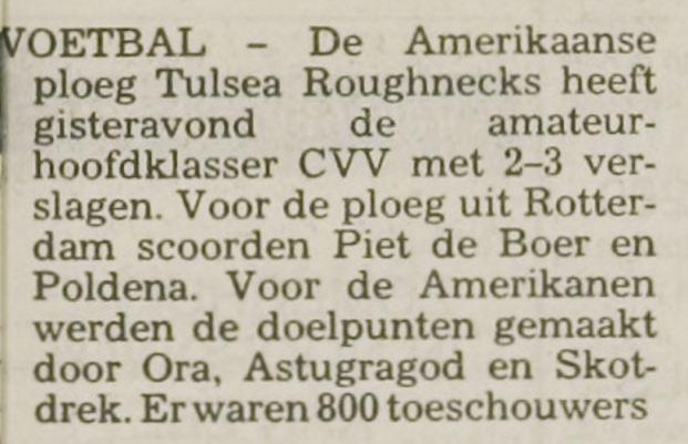 | Tulsa Roughnecks at Groningen (Netherlands) Date: September 19, 1979 Roughnecks lost 4-2 Attendance: |