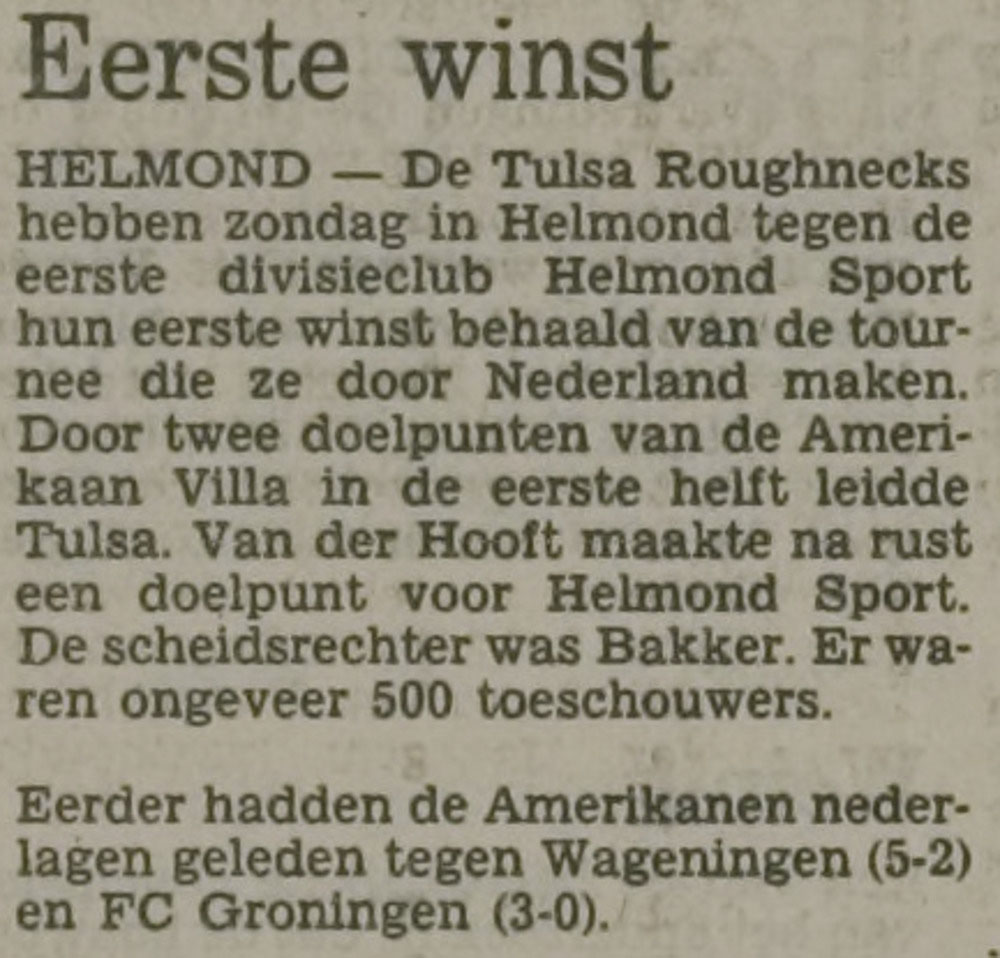 (Netherlands) Date: September 23, 1979 Roughnecks won 2-1 Attendance: Goals: Roughnecks-Greg Villa (2), Helmond Sport- |