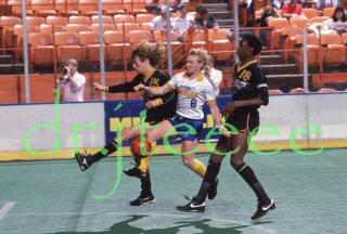![]() Doug Neely (15), Paul Dougherty (8), Chris Whyte (18) Los Angeles Lazers vs. San Diego Sockers |