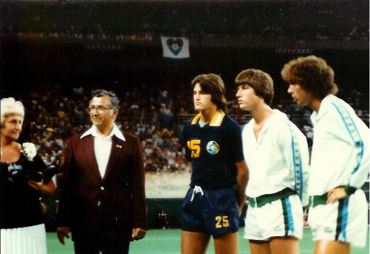 ![]() Bob Iarusci (3), Arno Steffenhagen (6), Karl-Heinz Granitza (12),Jeff Durgan (4) New York Cosmos at Chicago Sting Soccer Bowl '81 |